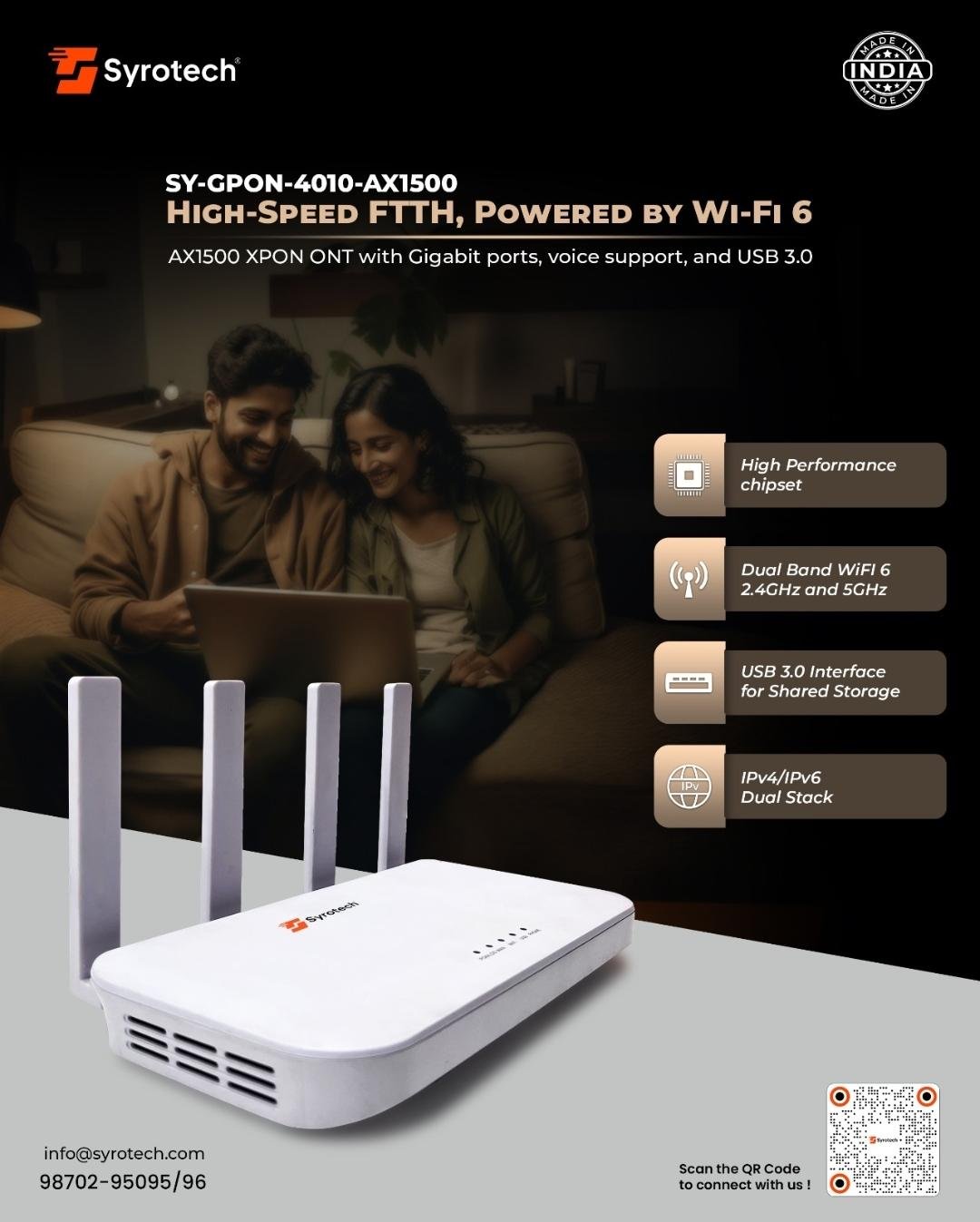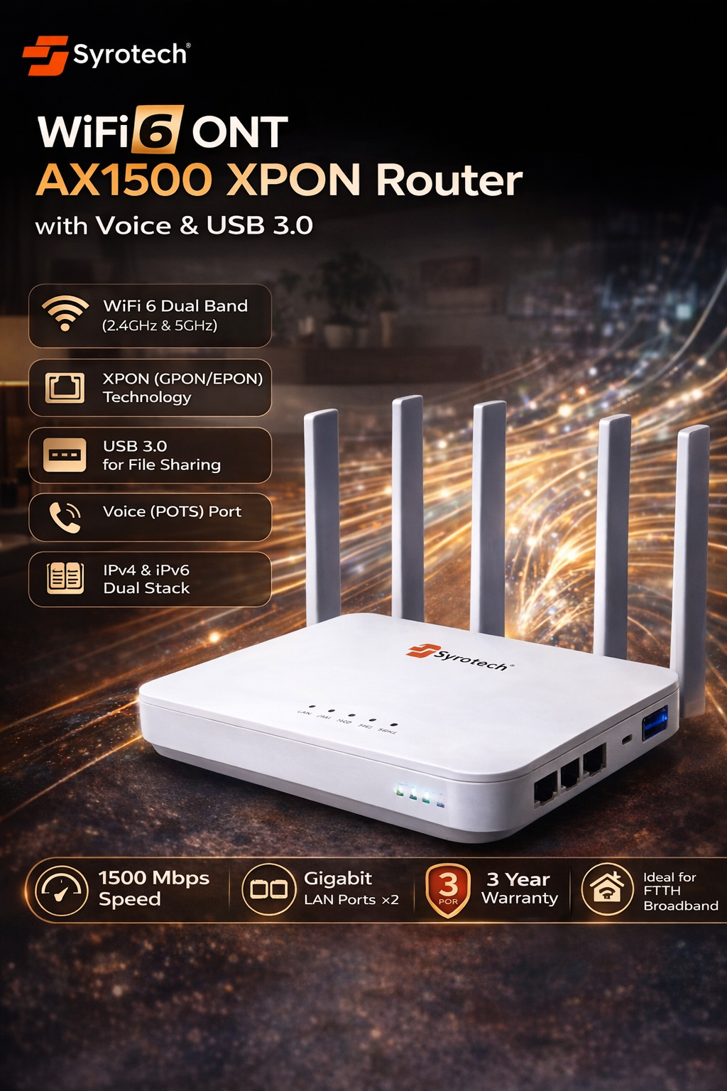 Syrotech SY-GPON-4010-AX1500 WiFi 6 XPON ONT Router